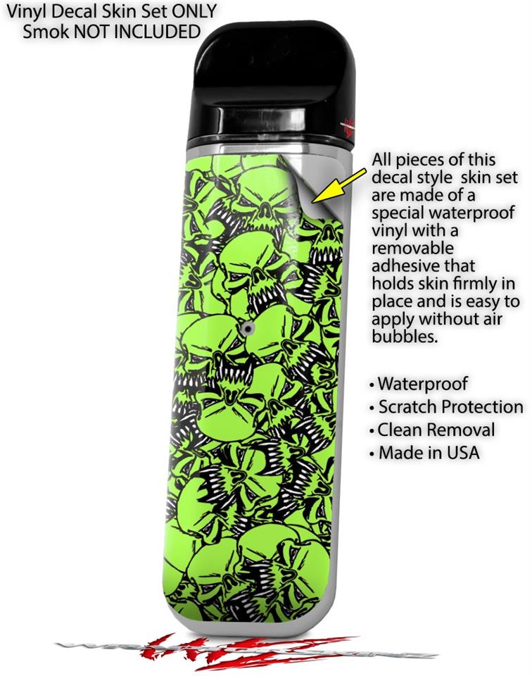 Skin Decal Wrap 2 Pack for Smok Novo v1 Scattered Skulls Neon Green VAPE NOT INCLUDED
