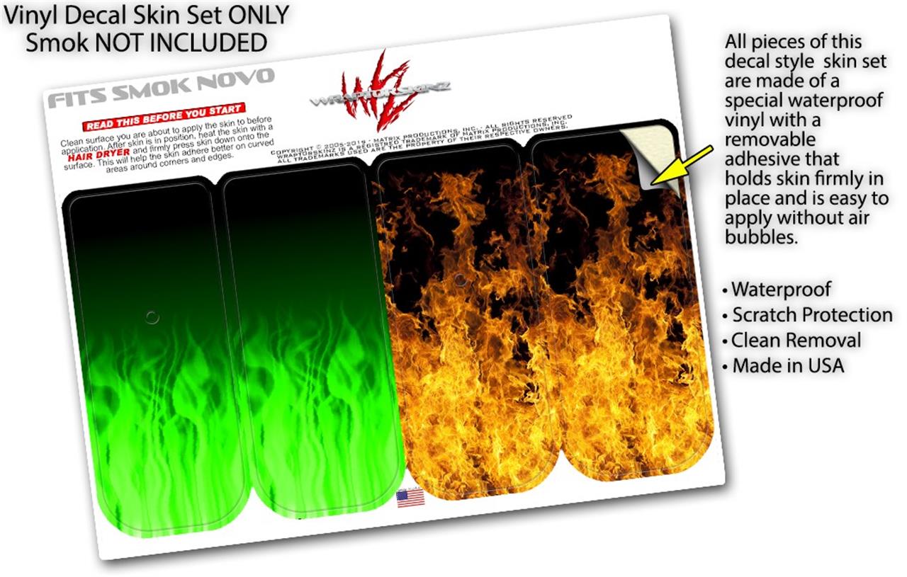Skin Decal Wrap 2 Pack for Smok Novo v1 Fire Green VAPE NOT INCLUDED