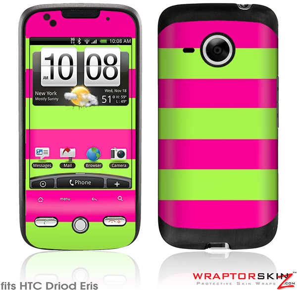 HTC Droid Eris Skin - Kearas Psycho Stripes Neon Green and Hot Pink