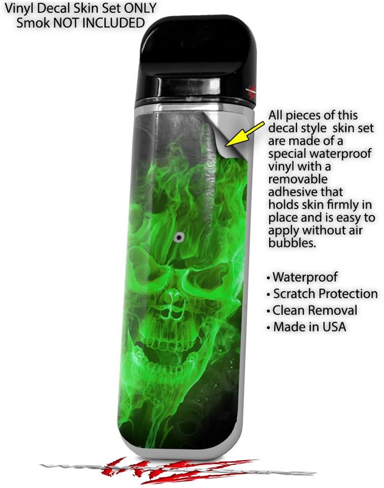 Skin Decal Wrap 2 Pack for Smok Novo v1 Flaming Fire Skull Green VAPE NOT INCLUDED