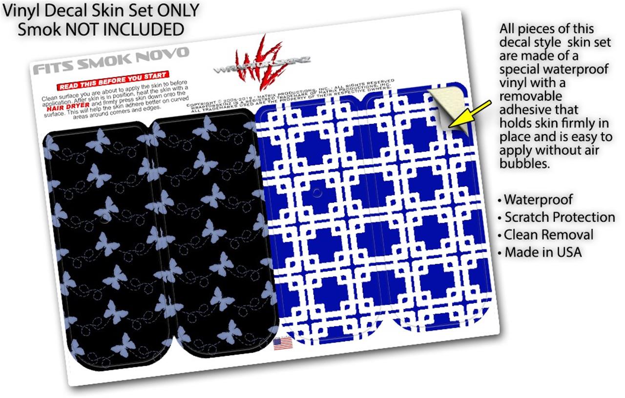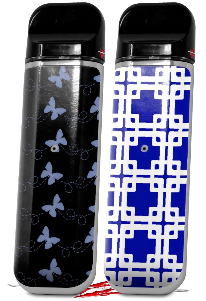 Skin Decal Wrap 2 Pack for Smok Novo v1 Pastel Butterflies Blue on Black VAPE NOT INCLUDED