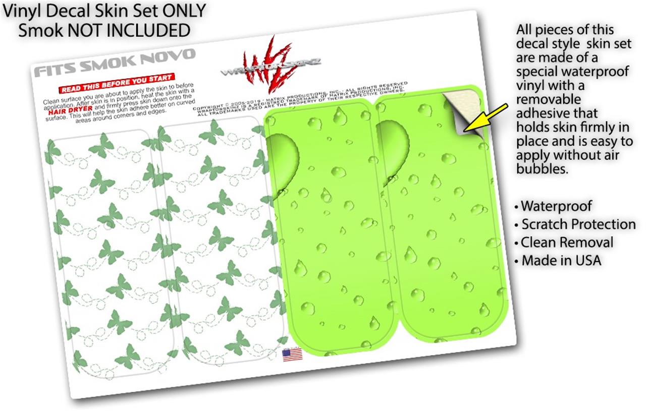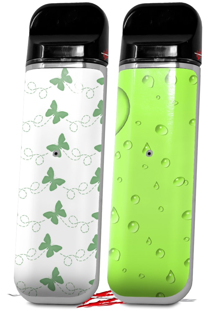 Skin Decal Wrap 2 Pack for Smok Novo v1 Pastel Butterflies Green on White VAPE NOT INCLUDED