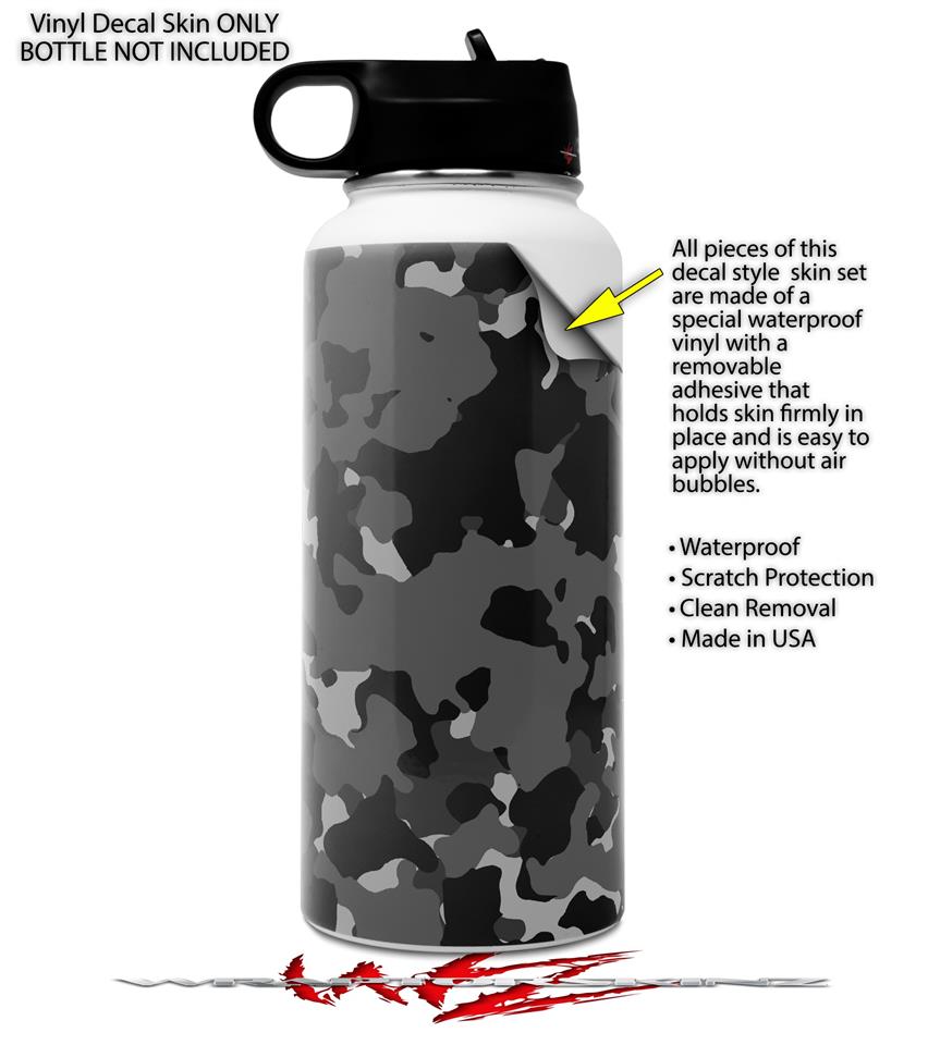 Skin Wrap Decal compatible with Hydro Flask Wide Mouth Bottle 32oz WraptorCamo Old School Camouflage Camo Black (BOTTLE NOT INCLUDED)