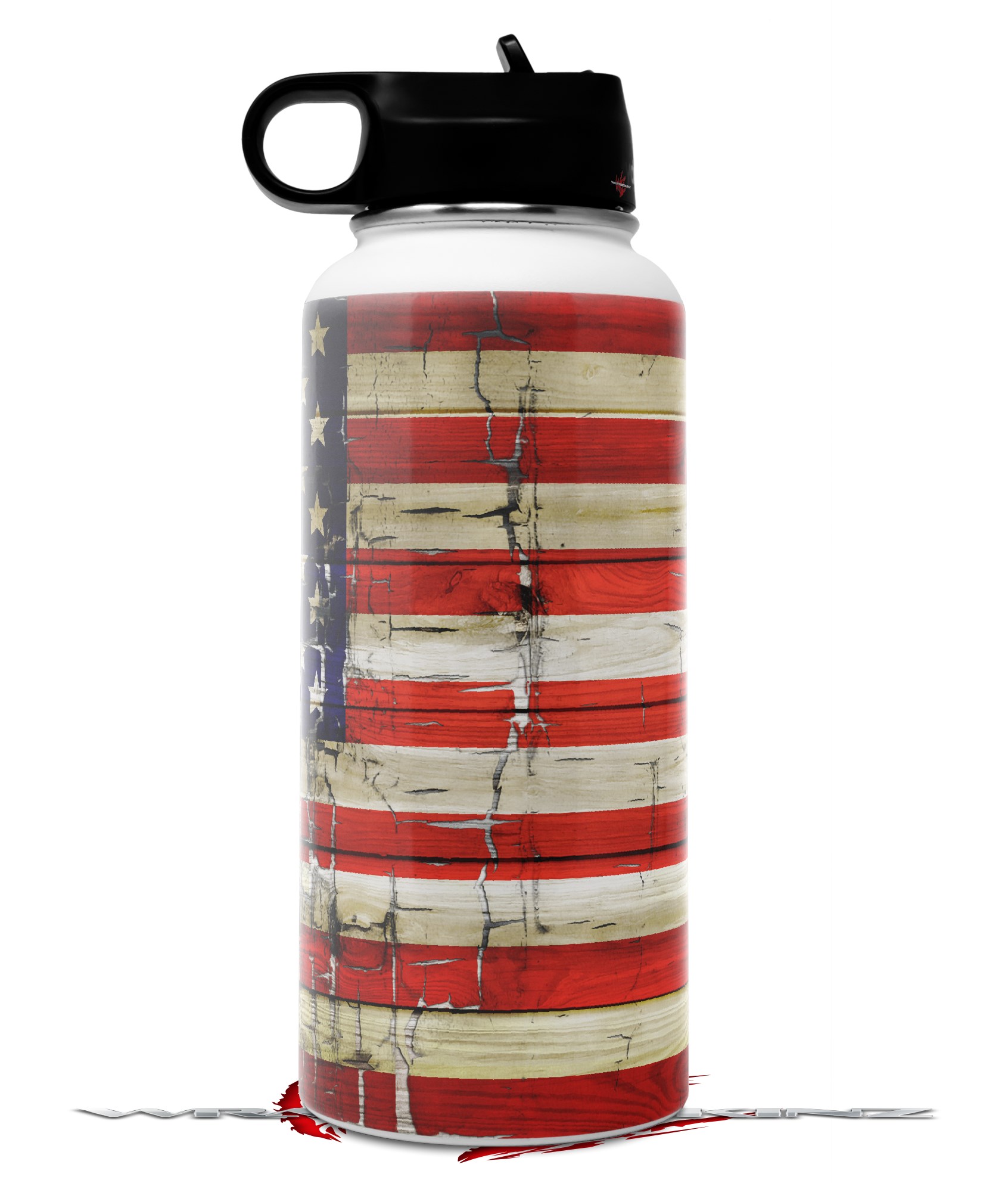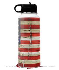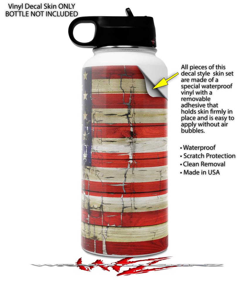 Skin Wrap Decal compatible with Hydro Flask Wide Mouth Bottle 32oz Painted Faded and Cracked USA American Flag (BOTTLE NOT INCLUDED)