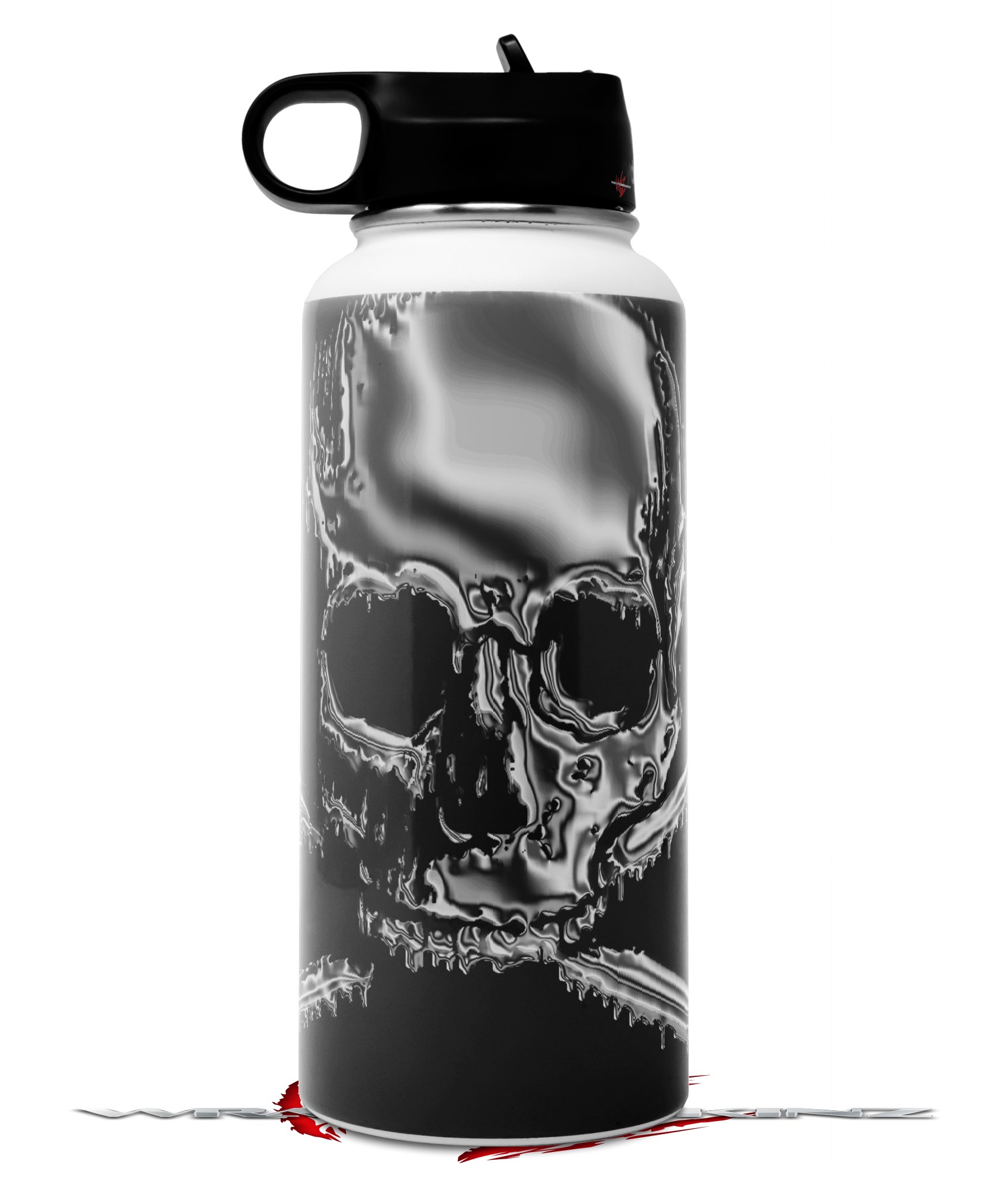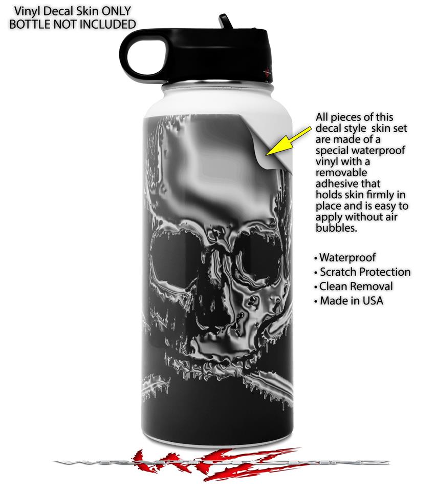 Skin Wrap Decal compatible with Hydro Flask Wide Mouth Bottle 32oz Chrome Skull on Black (BOTTLE NOT INCLUDED)