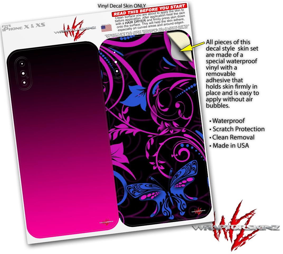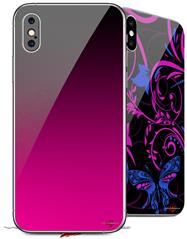 2 Decal style Skin Wraps set compatible with Apple iPhone X and XS Smooth Fades Hot Pink Black