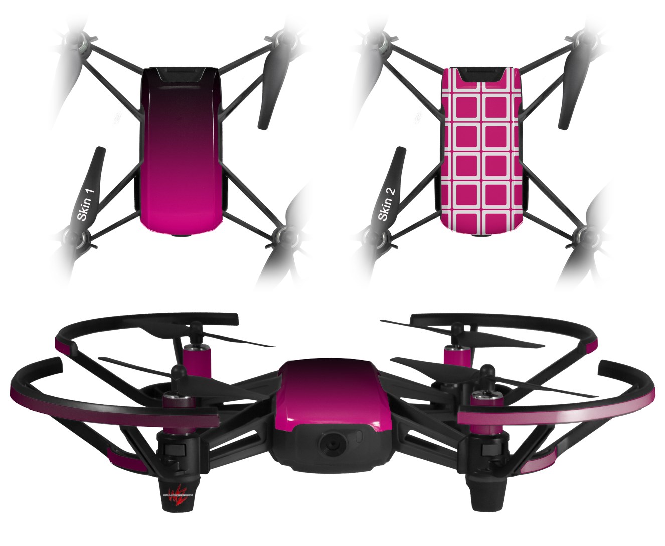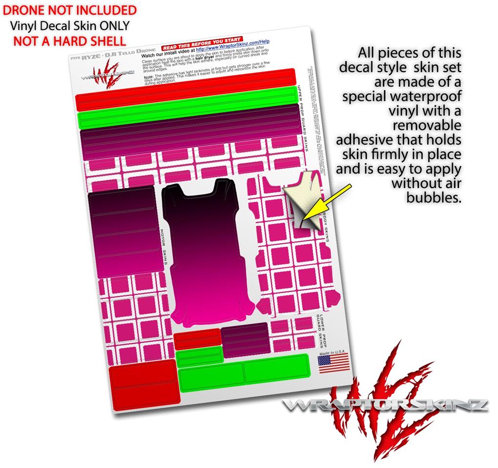 Skin Decal Wrap 2 Pack compatible with DJI Ryze Tello Drone Smooth Fades Hot Pink Black DRONE NOT INCLUDED