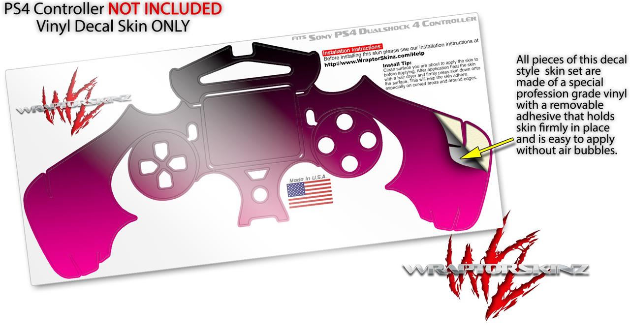 WraptorSkinz Skin compatible with Sony PS4 Dualshock Controller PlayStation 4 Original Slim and Pro Smooth Fades Hot Pink Black (CONTROLLER NOT INCLUDED)