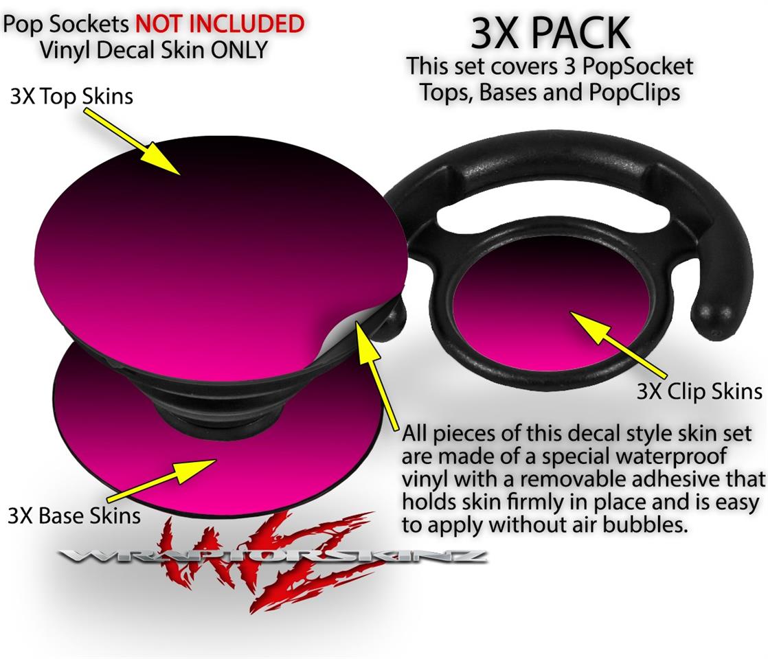 Decal Style Vinyl Skin Wrap 3 Pack works with PopSockets Smooth Fades Hot Pink Black (POPSOCKET NOT INCLUDED)
