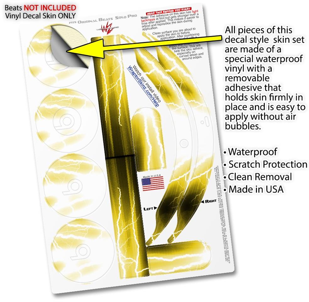 Skin Decal Wrap works with Original Beats Solo Pro Headphones Lightning Yellow Skin Only BEATS NOT INCLUDED