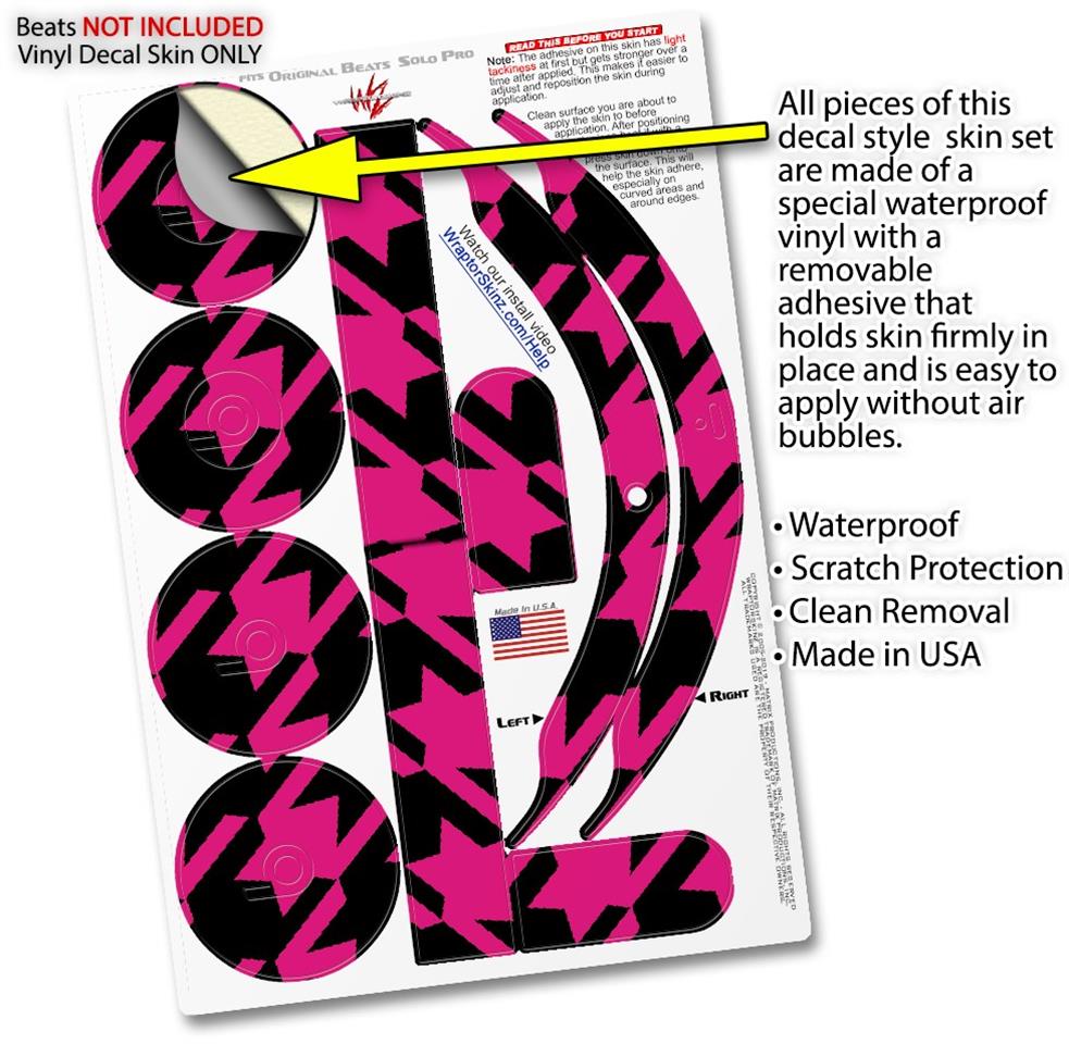 Skin Decal Wrap works with Original Beats Solo Pro Headphones Houndstooth Hot Pink on Black Skin Only BEATS NOT INCLUDED