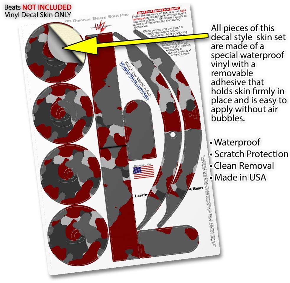 Skin Decal Wrap works with Original Beats Solo Pro Headphones WraptorCamo Old School Camouflage Camo Red Dark Skin Only BEATS NOT INCLUDED
