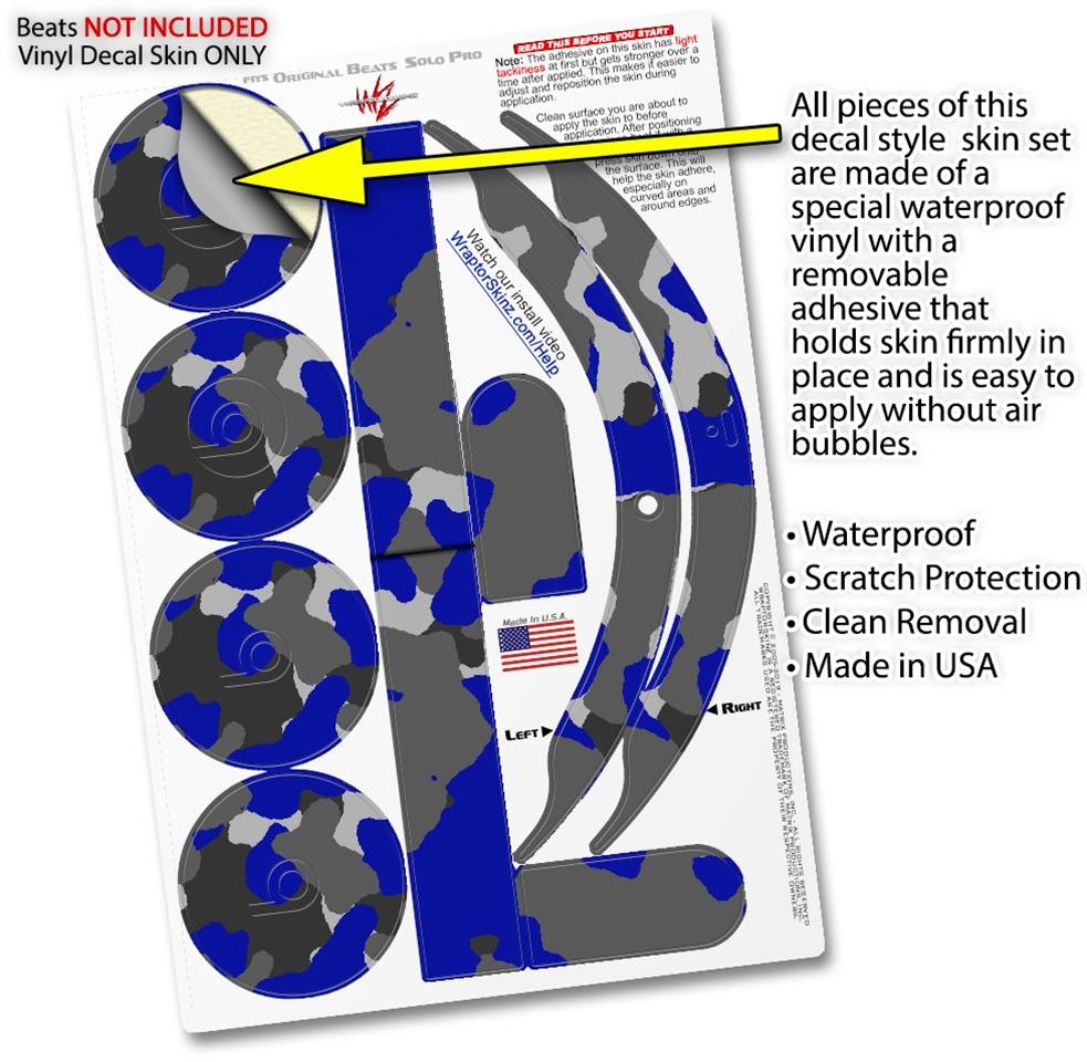 Skin Decal Wrap works with Original Beats Solo Pro Headphones WraptorCamo Old School Camouflage Camo Blue Royal Skin Only BEATS NOT INCLUDED