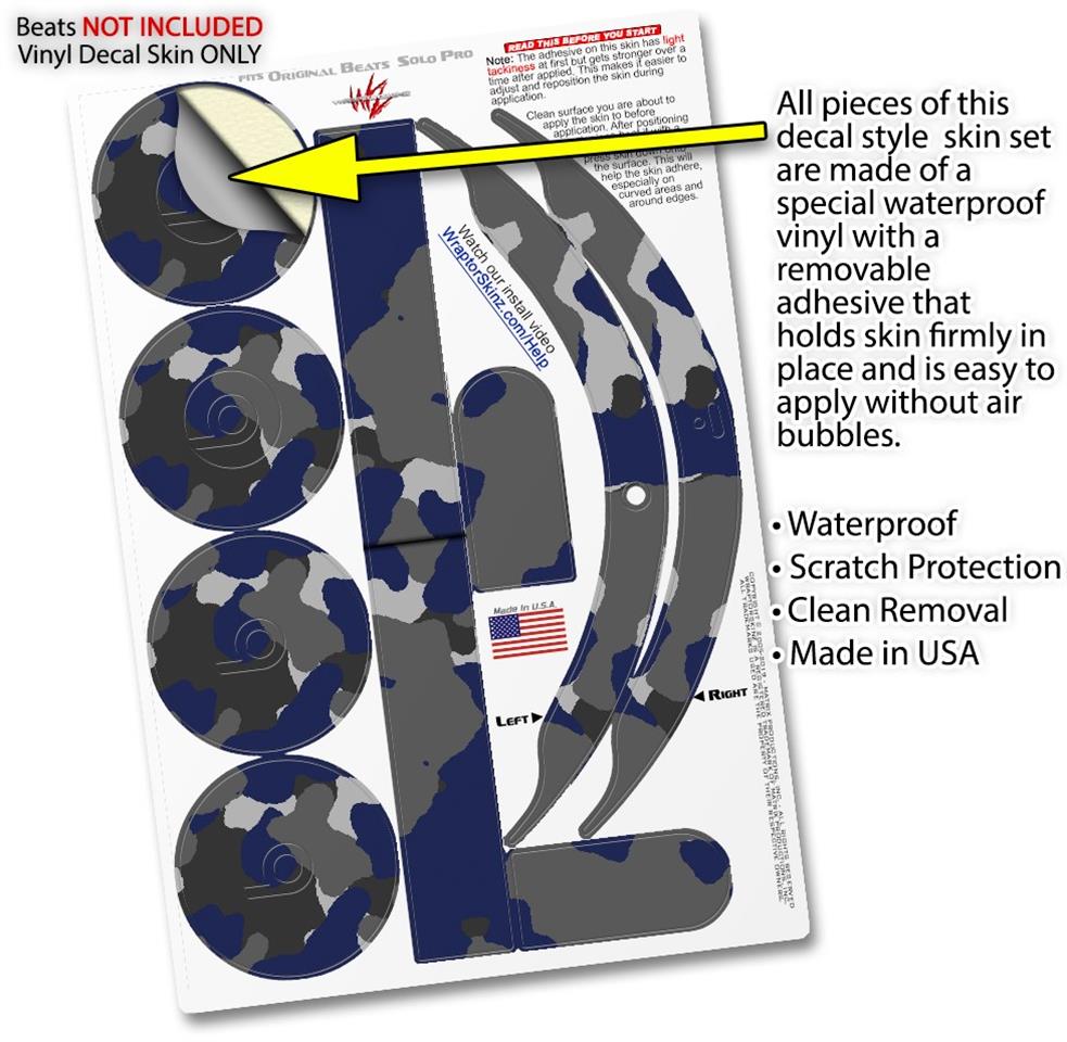 Skin Decal Wrap works with Original Beats Solo Pro Headphones WraptorCamo Old School Camouflage Camo Blue Navy Skin Only BEATS NOT INCLUDED