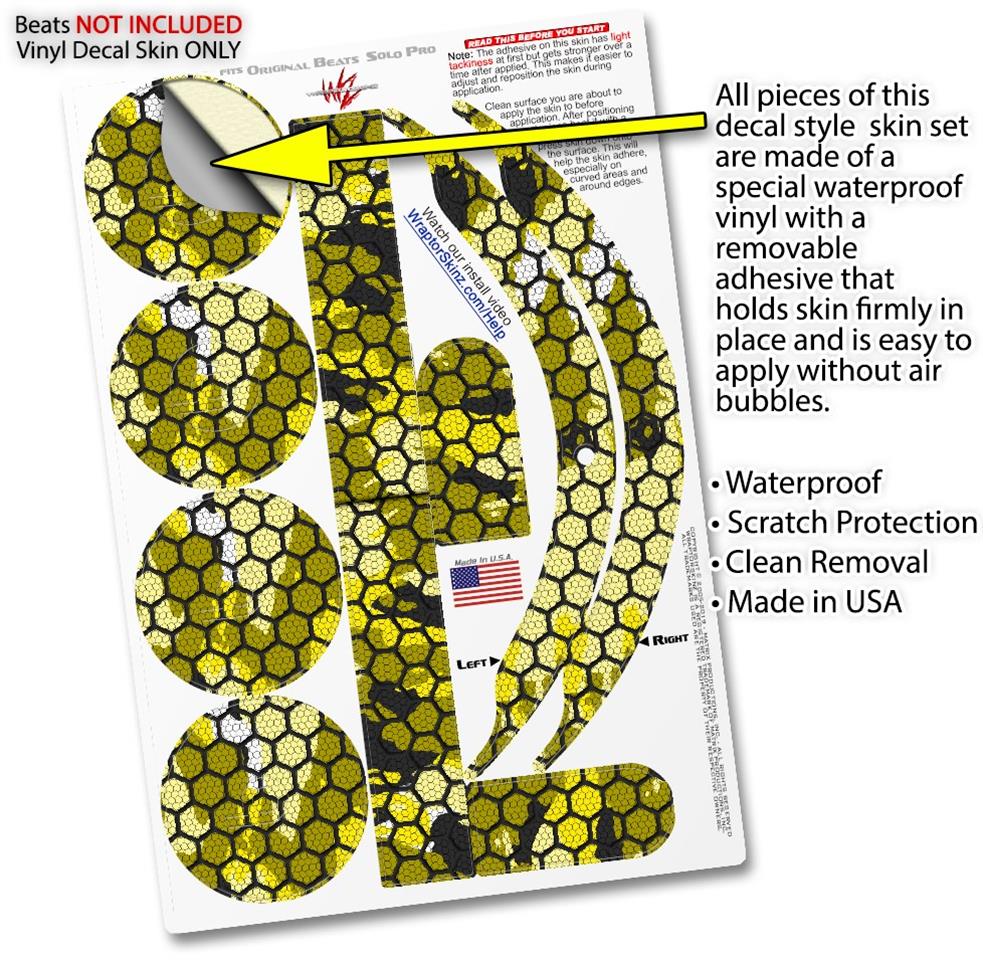 Skin Decal Wrap works with Original Beats Solo Pro Headphones HEX Mesh Camo 01 Yellow Skin Only BEATS NOT INCLUDED