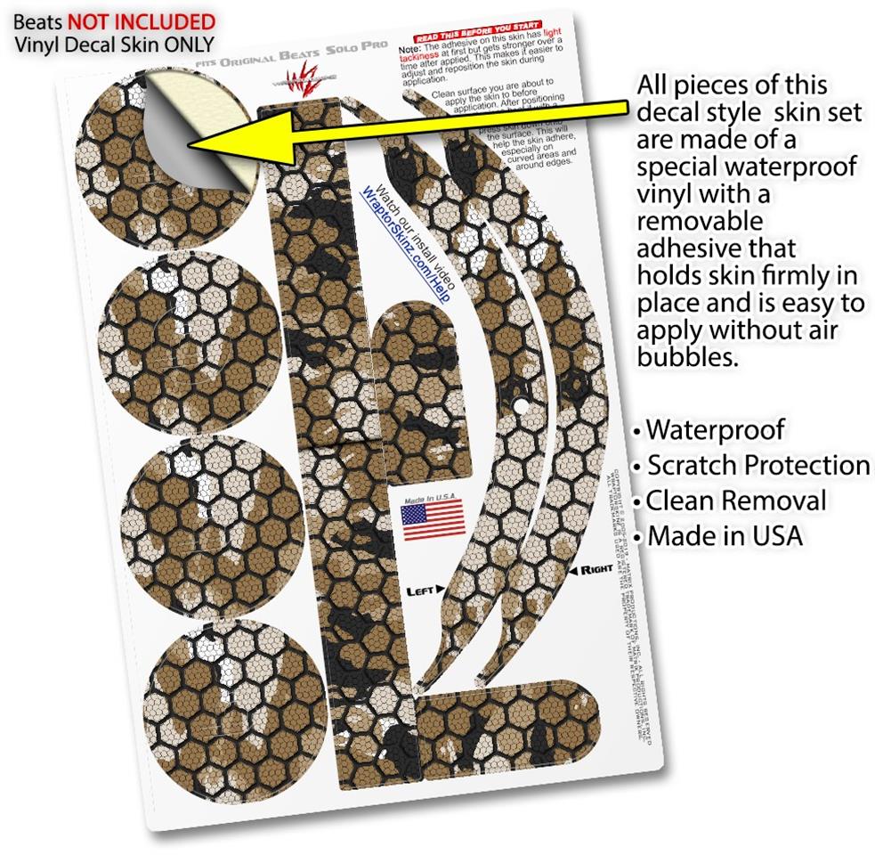 Skin Decal Wrap works with Original Beats Solo Pro Headphones HEX Mesh Camo 01 Tan Skin Only BEATS NOT INCLUDED