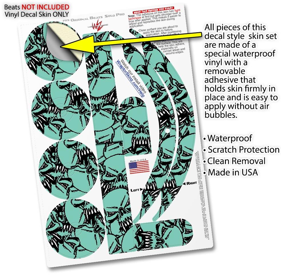 Skin Decal Wrap works with Original Beats Solo Pro Headphones Scattered Skulls Seafoam Green Skin Only BEATS NOT INCLUDED