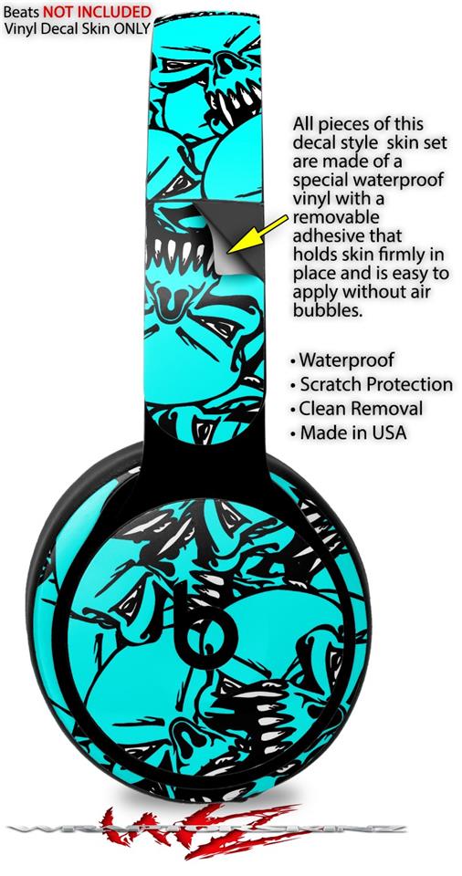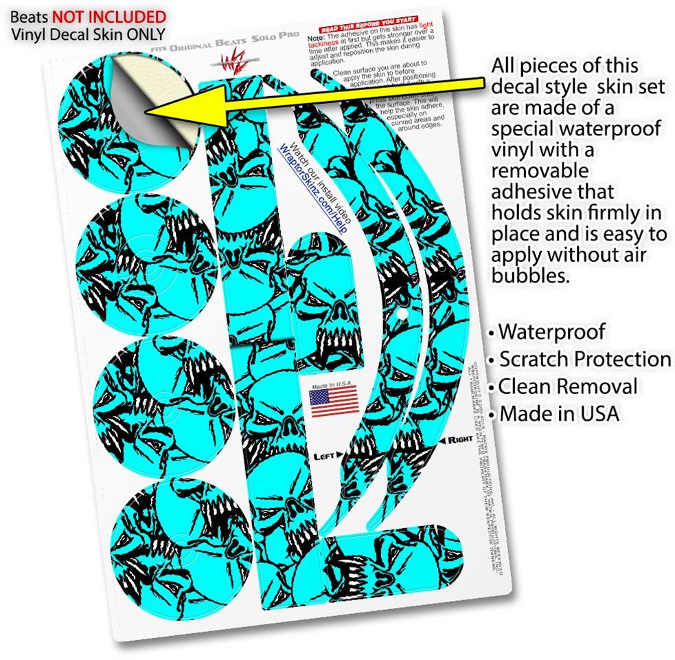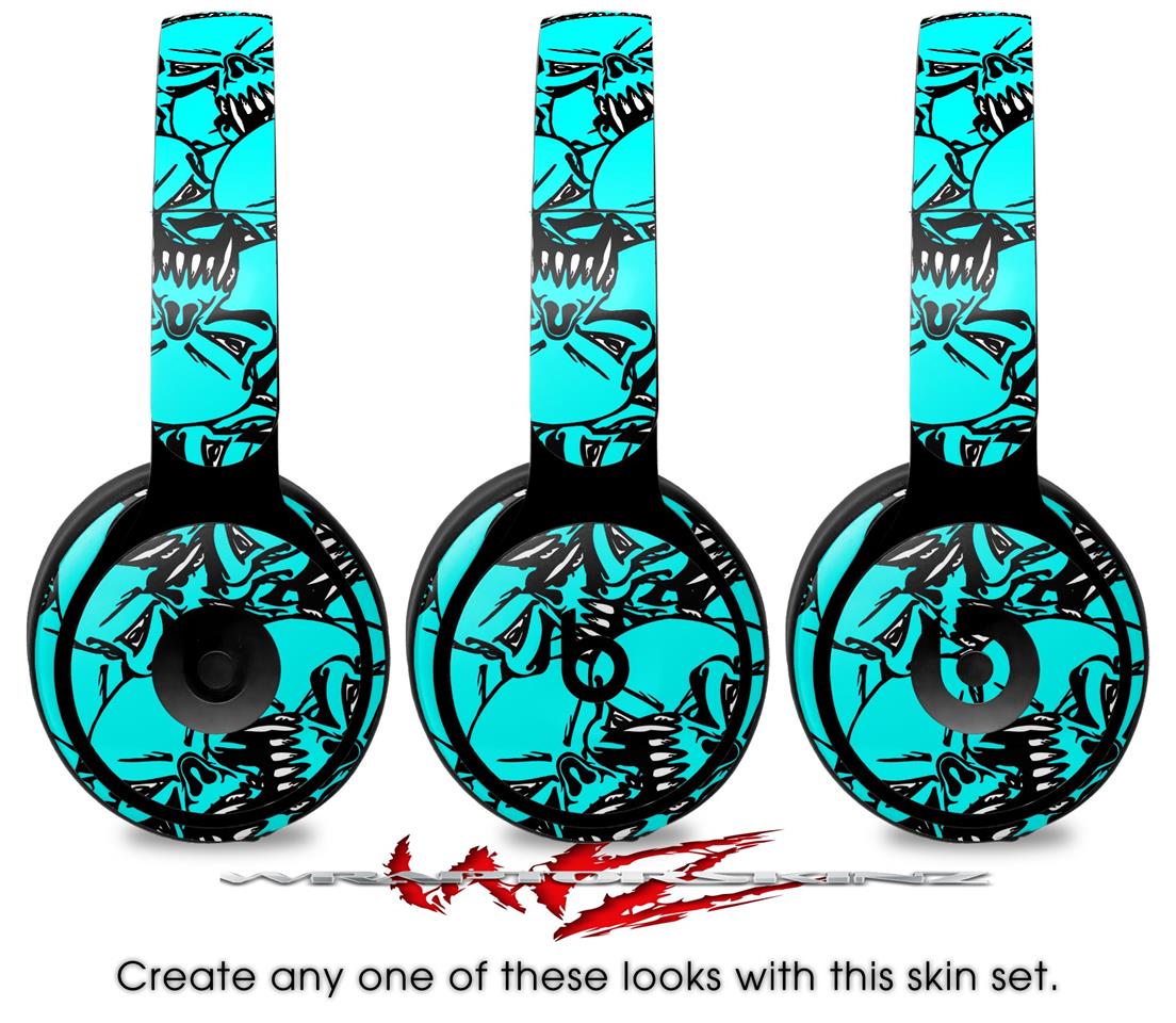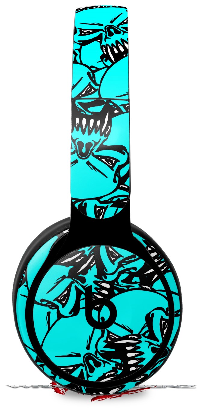 Skin Decal Wrap works with Original Beats Solo Pro Headphones Scattered Skulls Neon Teal Skin Only BEATS NOT INCLUDED