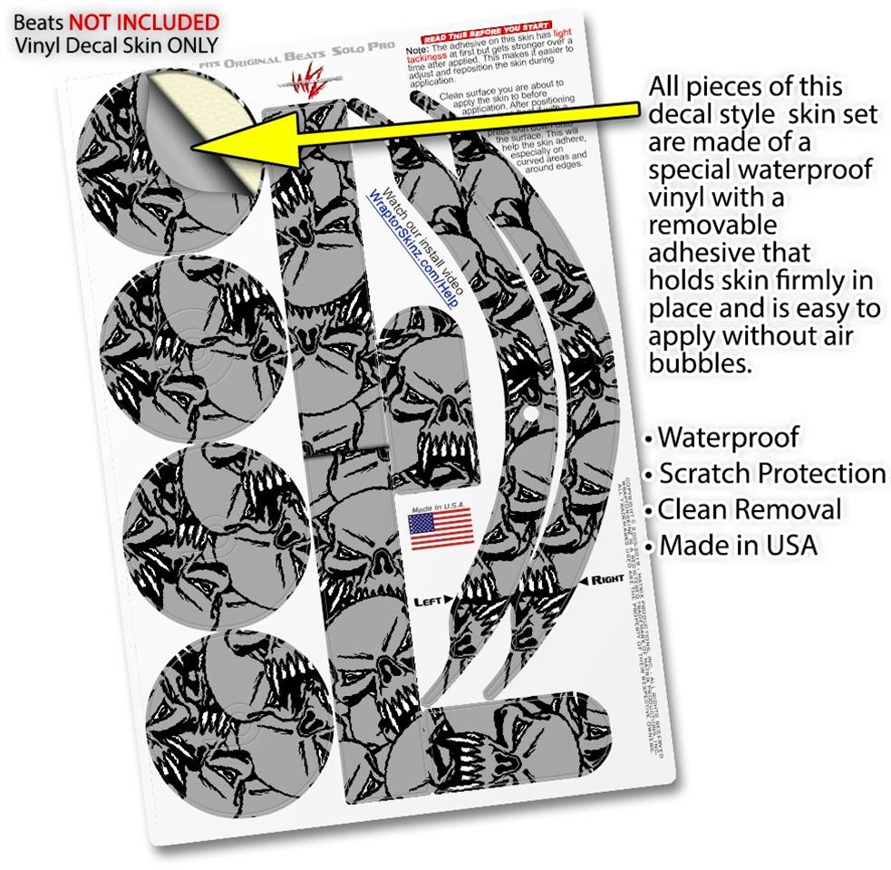 Skin Decal Wrap works with Original Beats Solo Pro Headphones Scattered Skulls Gray Skin Only BEATS NOT INCLUDED