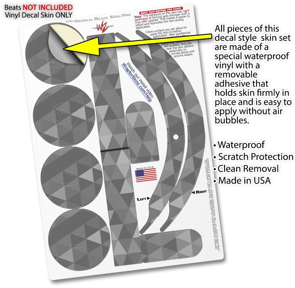 Skin Decal Wrap works with Original Beats Solo Pro Headphones Triangle Mosaic Gray Skin Only BEATS NOT INCLUDED