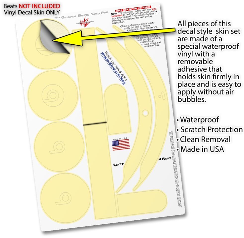 This product is in no way affiliated with or endorsed by Apple or Beats brand products. WraptorSkinz® skin wraps work with the Original Beats Solo Pro version 1 headphones. Printed using superb photo quality designs and vibrant colors printed with special fade resistant inks that last even in direct sun for years. WraptorSkinz are a composite of two layers of commercial grade materials. The bottom layer is a soft, flexible vinyl with a special removable adhesive that is easily positioned, applied without air bubbles. Next, we print the bottom layer with UV protected, fade resistant inks that deliver superb photo quality designs in vibrant colors. Finally, we bond a professional grade laminate over the entire skin adding a glossy protective finish.