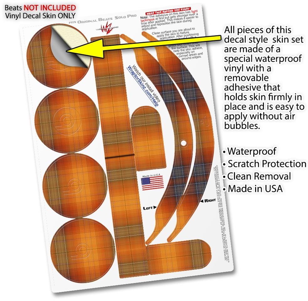 Skin Decal Wrap works with Original Beats Solo Pro Headphones Plaid Pumpkin Orange Skin Only BEATS NOT INCLUDED