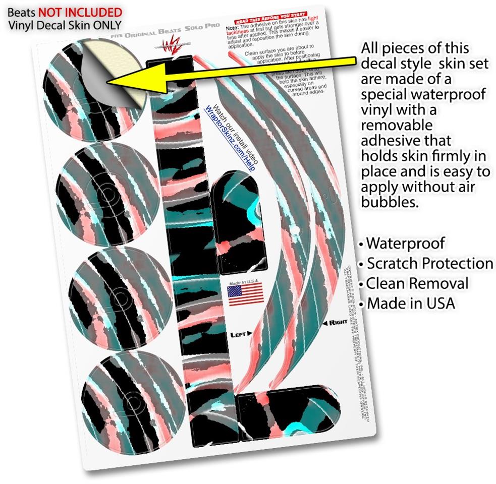 This product is in no way affiliated with or endorsed by Apple or Beats brand products. WraptorSkinz® skin wraps work with the Original Beats Solo Pro version 1 headphones. Printed using superb photo quality designs and vibrant colors printed with special fade resistant inks that last even in direct sun for years. WraptorSkinz are a composite of two layers of commercial grade materials. The bottom layer is a soft, flexible vinyl with a special removable adhesive that is easily positioned, applied without air bubbles. Next, we print the bottom layer with UV protected, fade resistant inks that deliver superb photo quality designs in vibrant colors. Finally, we bond a professional grade laminate over the entire skin adding a glossy protective finish.