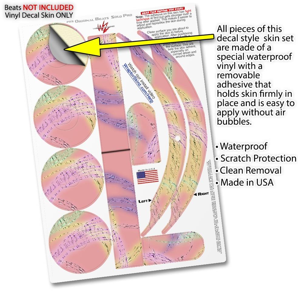 This product is in no way affiliated with or endorsed by Apple or Beats brand products. WraptorSkinz® skin wraps work with the Original Beats Solo Pro version 1 headphones. Printed using superb photo quality designs and vibrant colors printed with special fade resistant inks that last even in direct sun for years. WraptorSkinz are a composite of two layers of commercial grade materials. The bottom layer is a soft, flexible vinyl with a special removable adhesive that is easily positioned, applied without air bubbles. Next, we print the bottom layer with UV protected, fade resistant inks that deliver superb photo quality designs in vibrant colors. Finally, we bond a professional grade laminate over the entire skin adding a glossy protective finish.