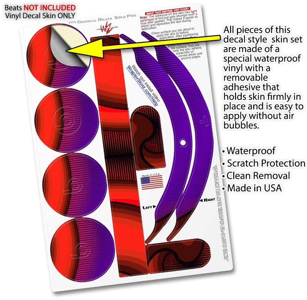 This product is in no way affiliated with or endorsed by Apple or Beats brand products. WraptorSkinz® skin wraps work with the Original Beats Solo Pro version 1 headphones. Printed using superb photo quality designs and vibrant colors printed with special fade resistant inks that last even in direct sun for years. WraptorSkinz are a composite of two layers of commercial grade materials. The bottom layer is a soft, flexible vinyl with a special removable adhesive that is easily positioned, applied without air bubbles. Next, we print the bottom layer with UV protected, fade resistant inks that deliver superb photo quality designs in vibrant colors. Finally, we bond a professional grade laminate over the entire skin adding a glossy protective finish.