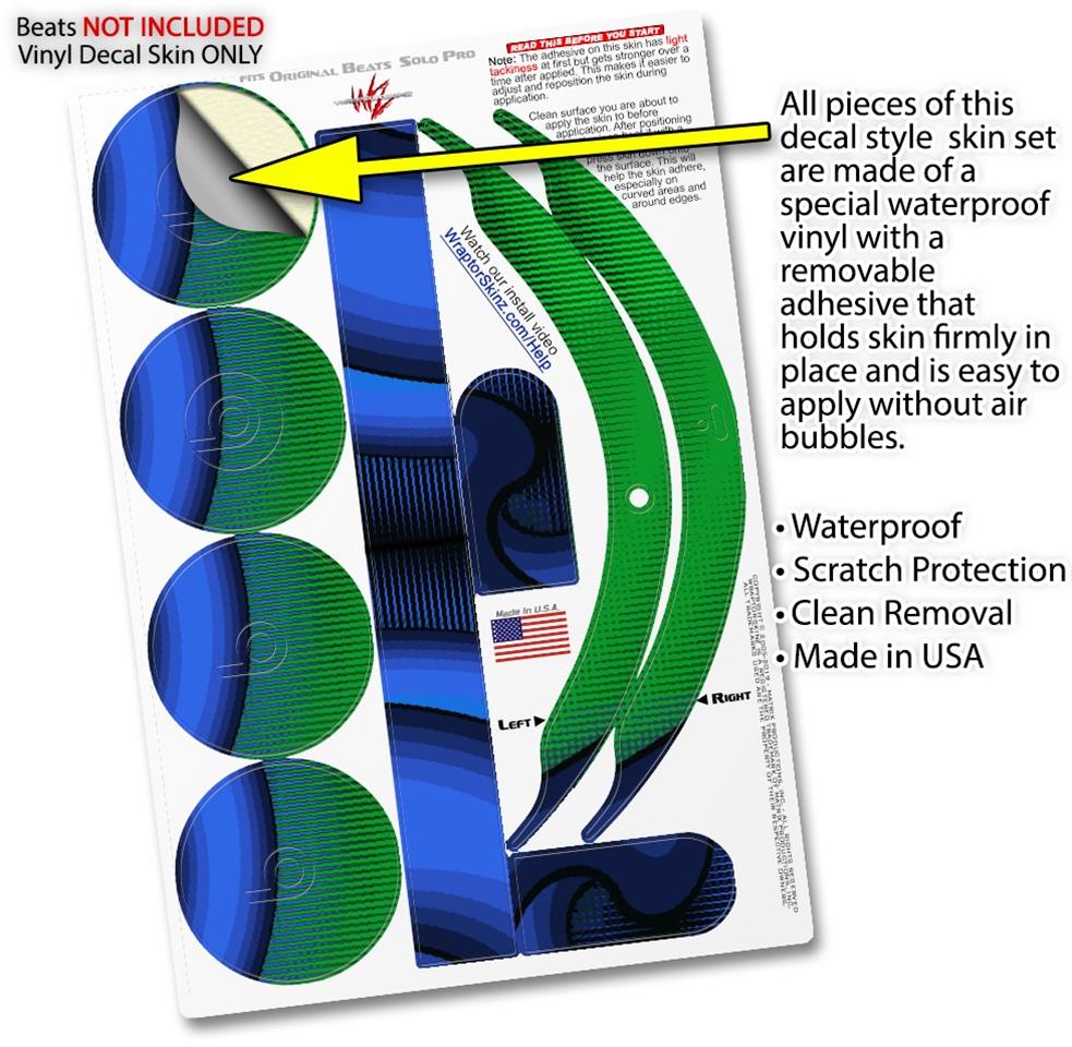 This product is in no way affiliated with or endorsed by Apple or Beats brand products. WraptorSkinz® skin wraps work with the Original Beats Solo Pro version 1 headphones. Printed using superb photo quality designs and vibrant colors printed with special fade resistant inks that last even in direct sun for years. WraptorSkinz are a composite of two layers of commercial grade materials. The bottom layer is a soft, flexible vinyl with a special removable adhesive that is easily positioned, applied without air bubbles. Next, we print the bottom layer with UV protected, fade resistant inks that deliver superb photo quality designs in vibrant colors. Finally, we bond a professional grade laminate over the entire skin adding a glossy protective finish.