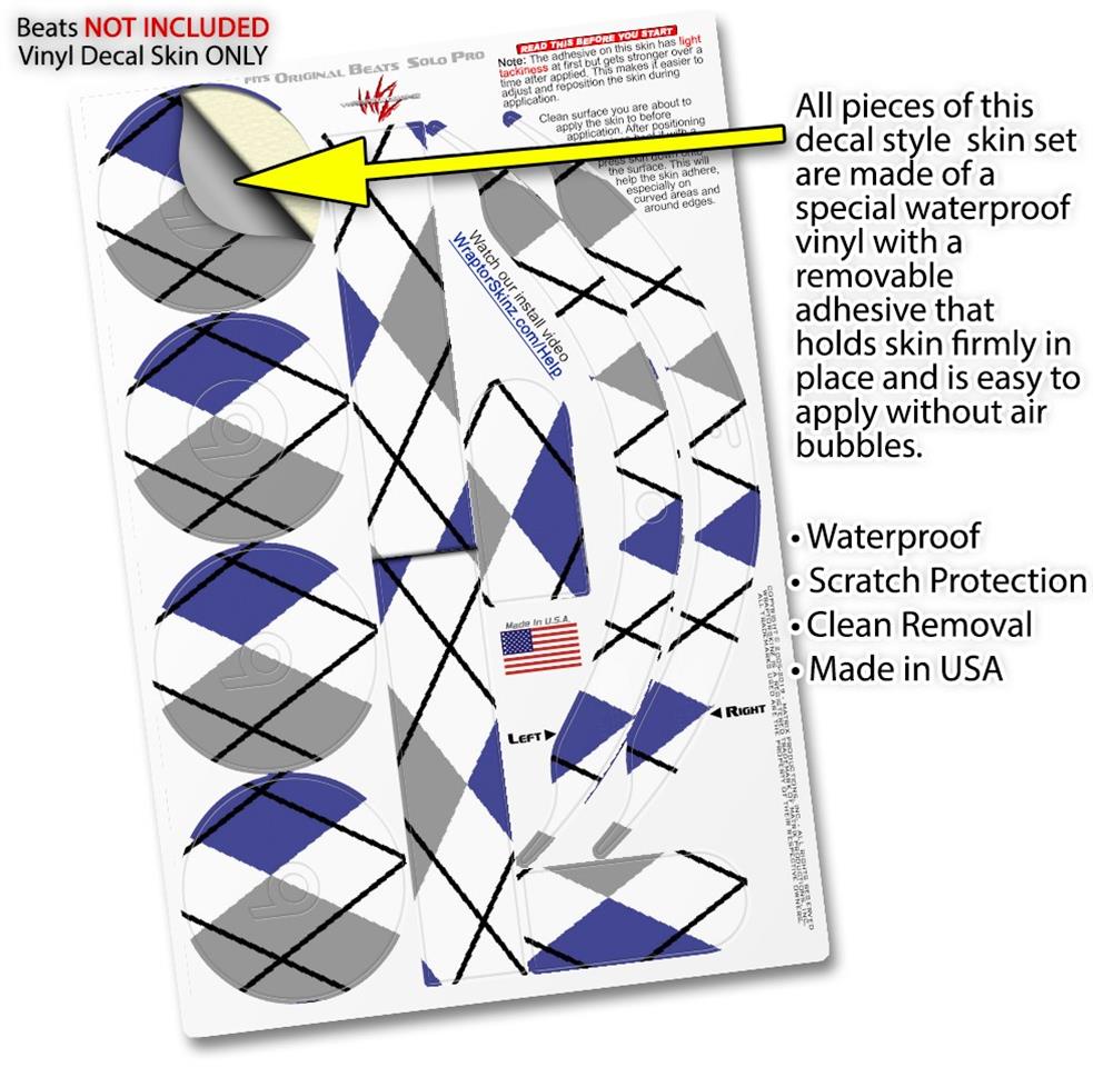 Skin Decal Wrap works with Original Beats Solo Pro Headphones Argyle Blue and Gray Skin Only BEATS NOT INCLUDED
