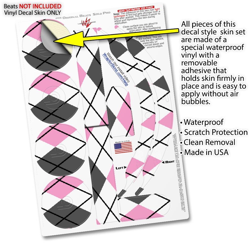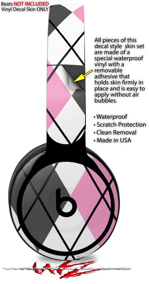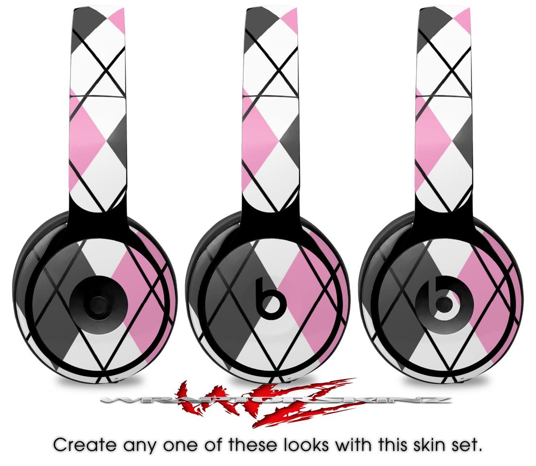 Skin Decal Wrap works with Original Beats Solo Pro Headphones Argyle Pink and Gray Skin Only BEATS NOT INCLUDED