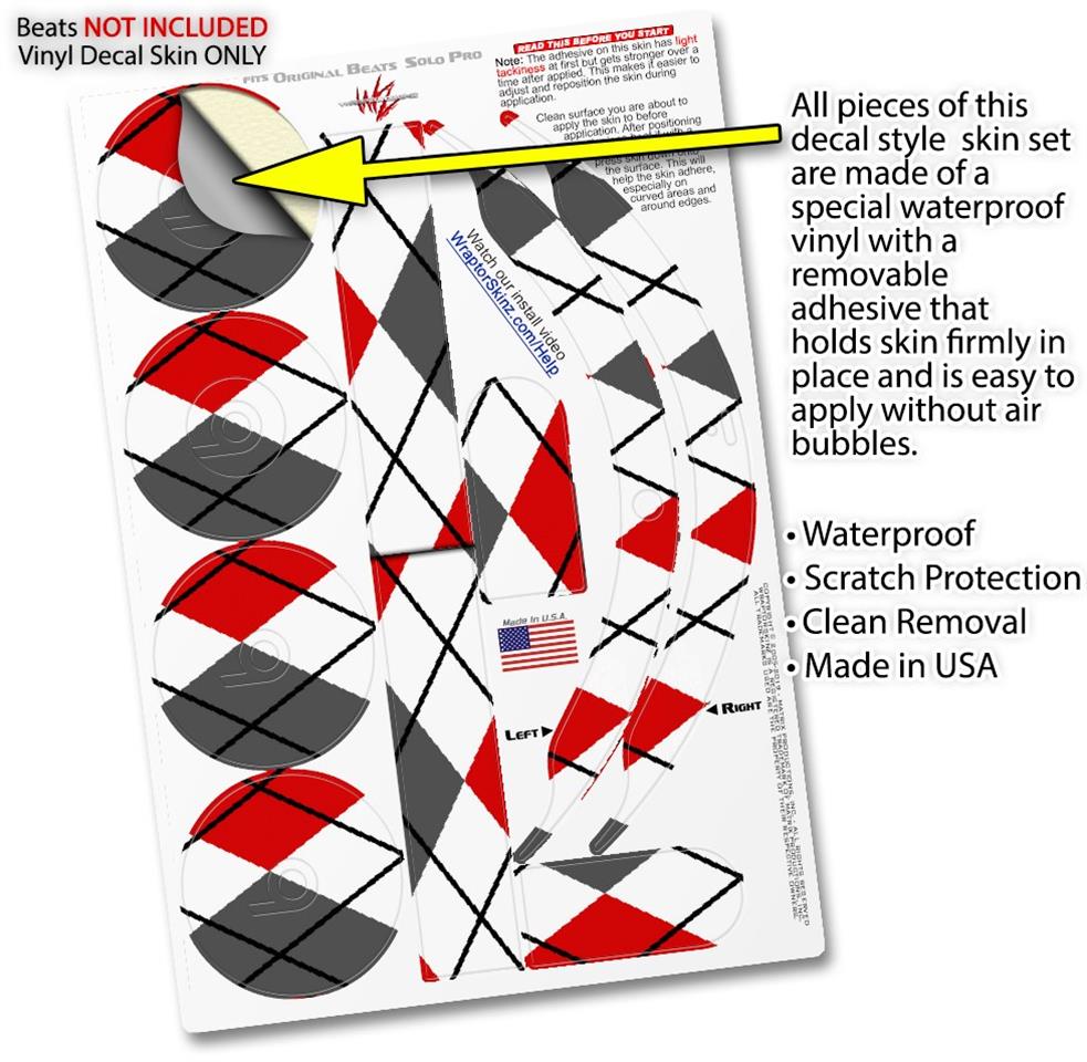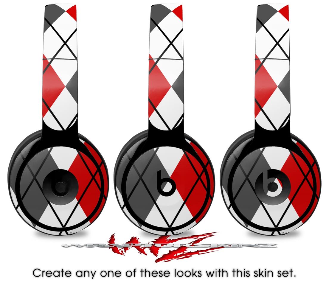 Skin Decal Wrap works with Original Beats Solo Pro Headphones Argyle Red and Gray Skin Only BEATS NOT INCLUDED