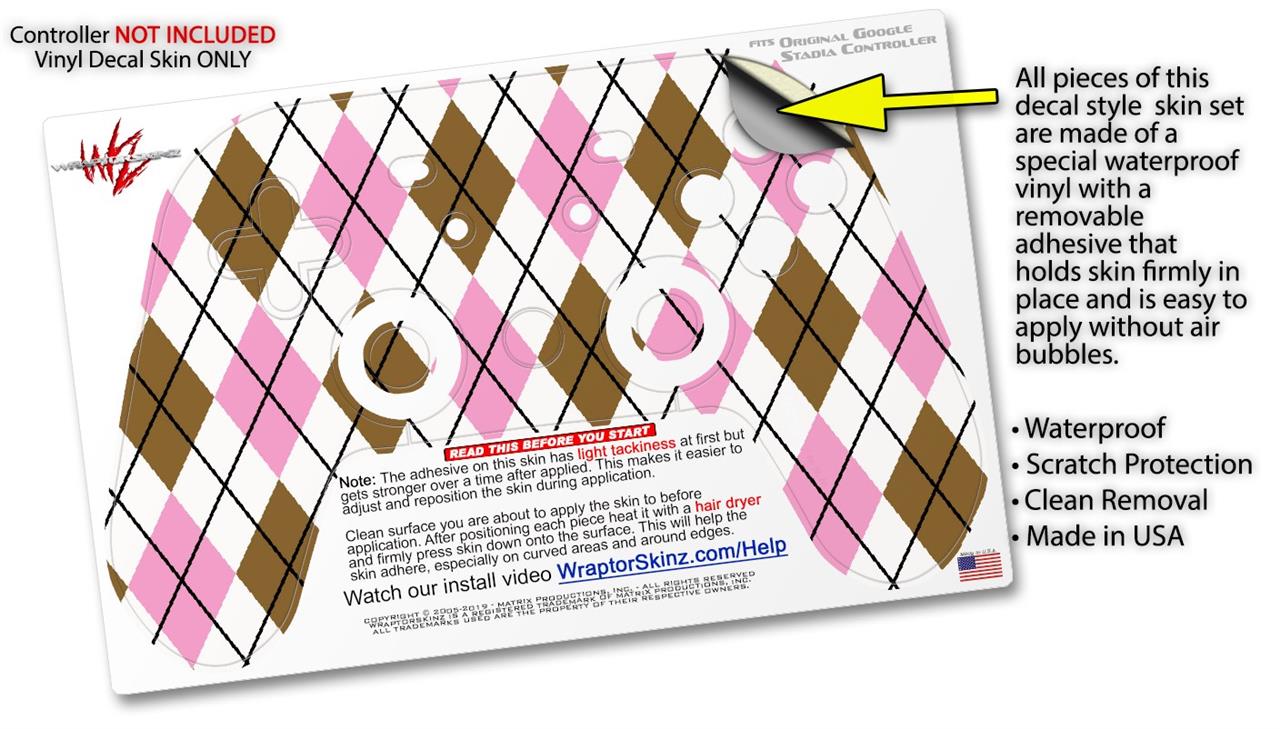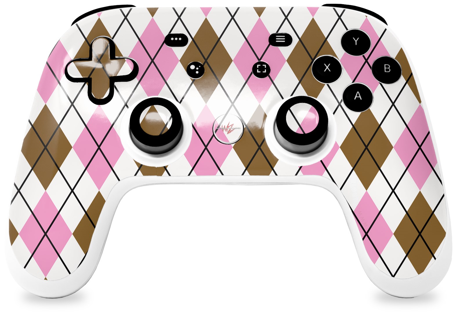 Skin Decal Wrap works with Original Google Stadia Controller Argyle Pink and Brown Skin Only CONTROLLER NOT INCLUDED