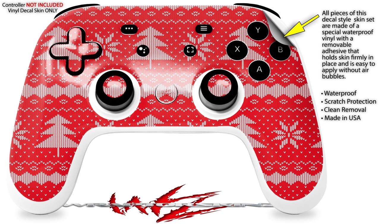 Skin Decal Wrap works with Original Google Stadia Controller Ugly Holiday Christmas Sweater - Christmas Trees Red 01 Skin Only CONTROLLER NOT INCLUDED