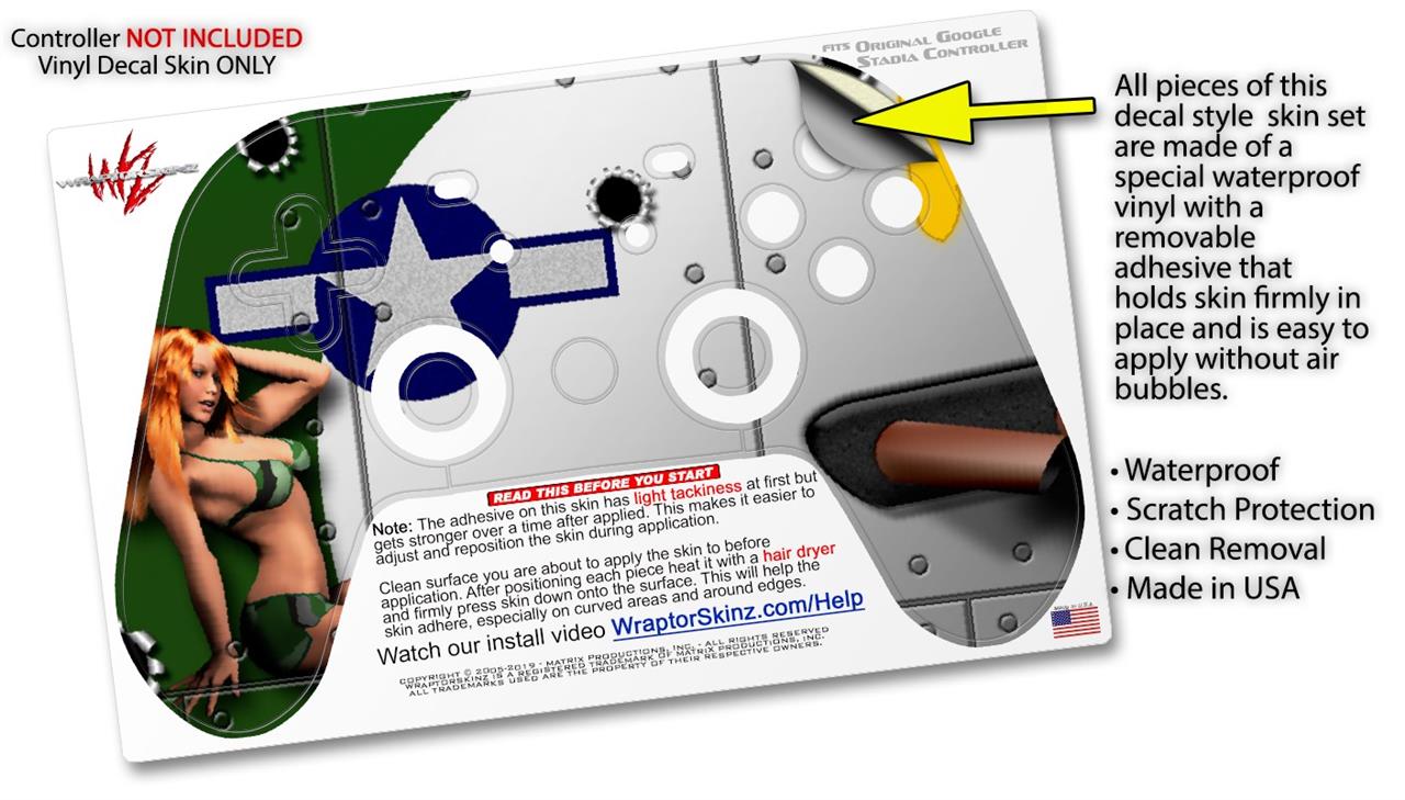 Skin Decal Wrap works with Original Google Stadia Controller WWII Bomber War Plane Pin Up Girl Skin Only CONTROLLER NOT INCLUDED