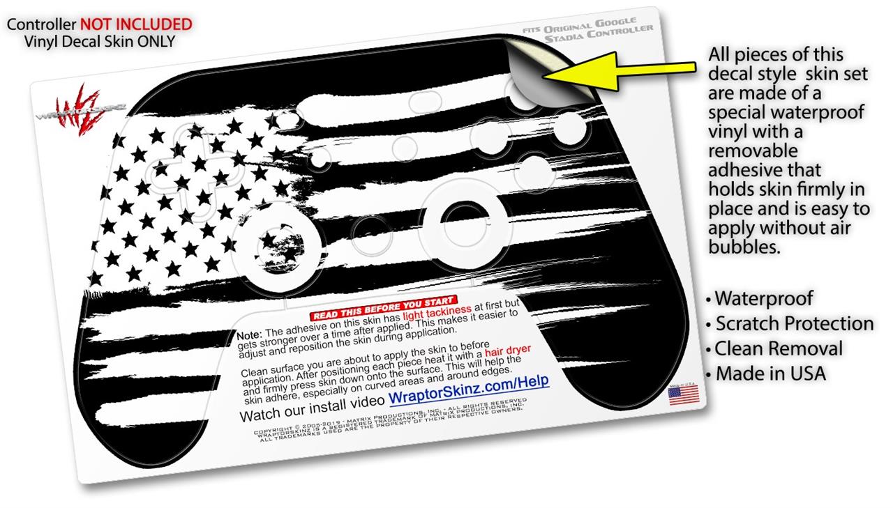 Skin Decal Wrap works with Original Google Stadia Controller Brushed USA American Flag Skin Only CONTROLLER NOT INCLUDED