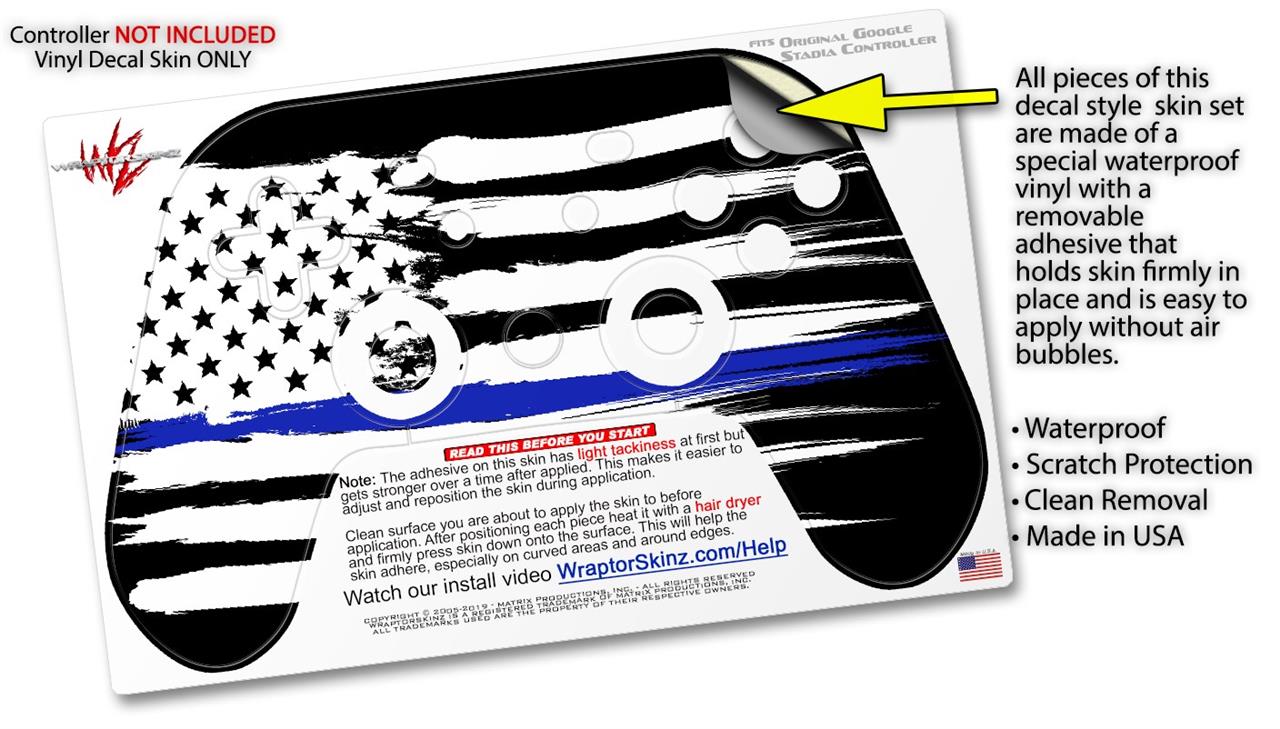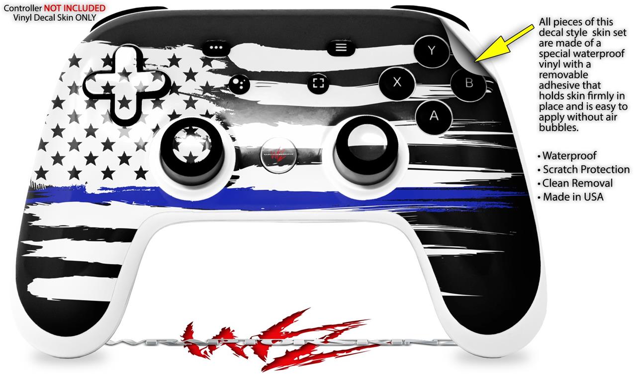 Skin Decal Wrap works with Original Google Stadia Controller Brushed USA American Flag Blue Line Skin Only CONTROLLER NOT INCLUDED