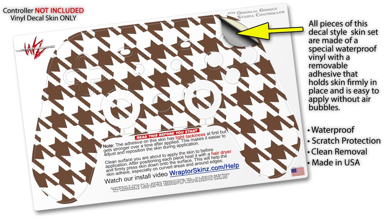 Skin Decal Wrap works with Original Google Stadia Controller Houndstooth Chocolate Brown Skin Only CONTROLLER NOT INCLUDED