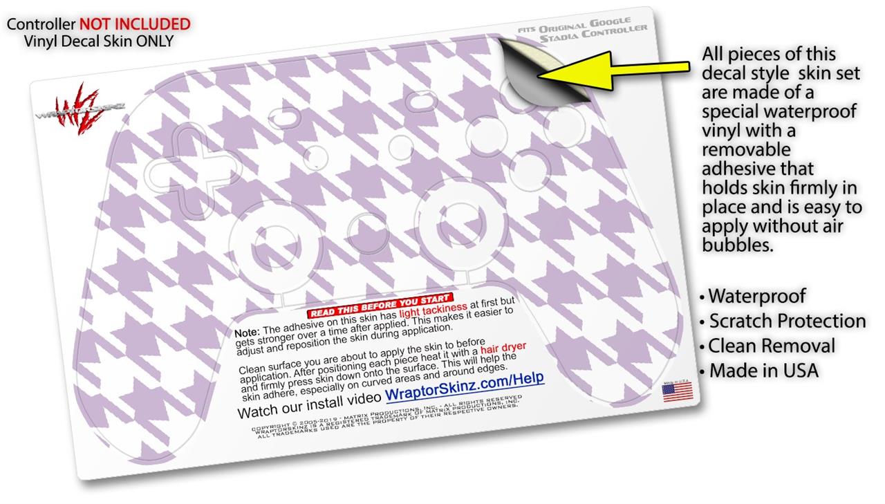 Skin Decal Wrap works with Original Google Stadia Controller Houndstooth Lavender Skin Only CONTROLLER NOT INCLUDED