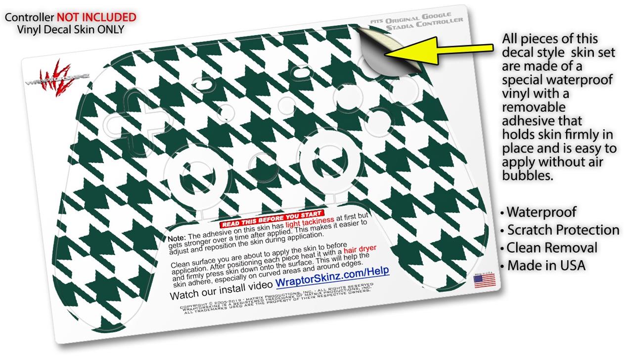 Skin Decal Wrap works with Original Google Stadia Controller Houndstooth Hunter Green Skin Only CONTROLLER NOT INCLUDED