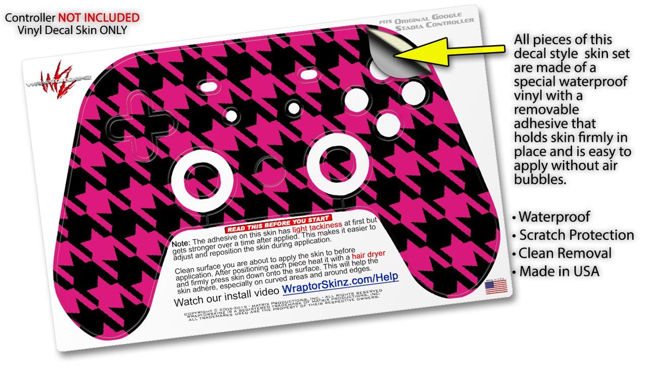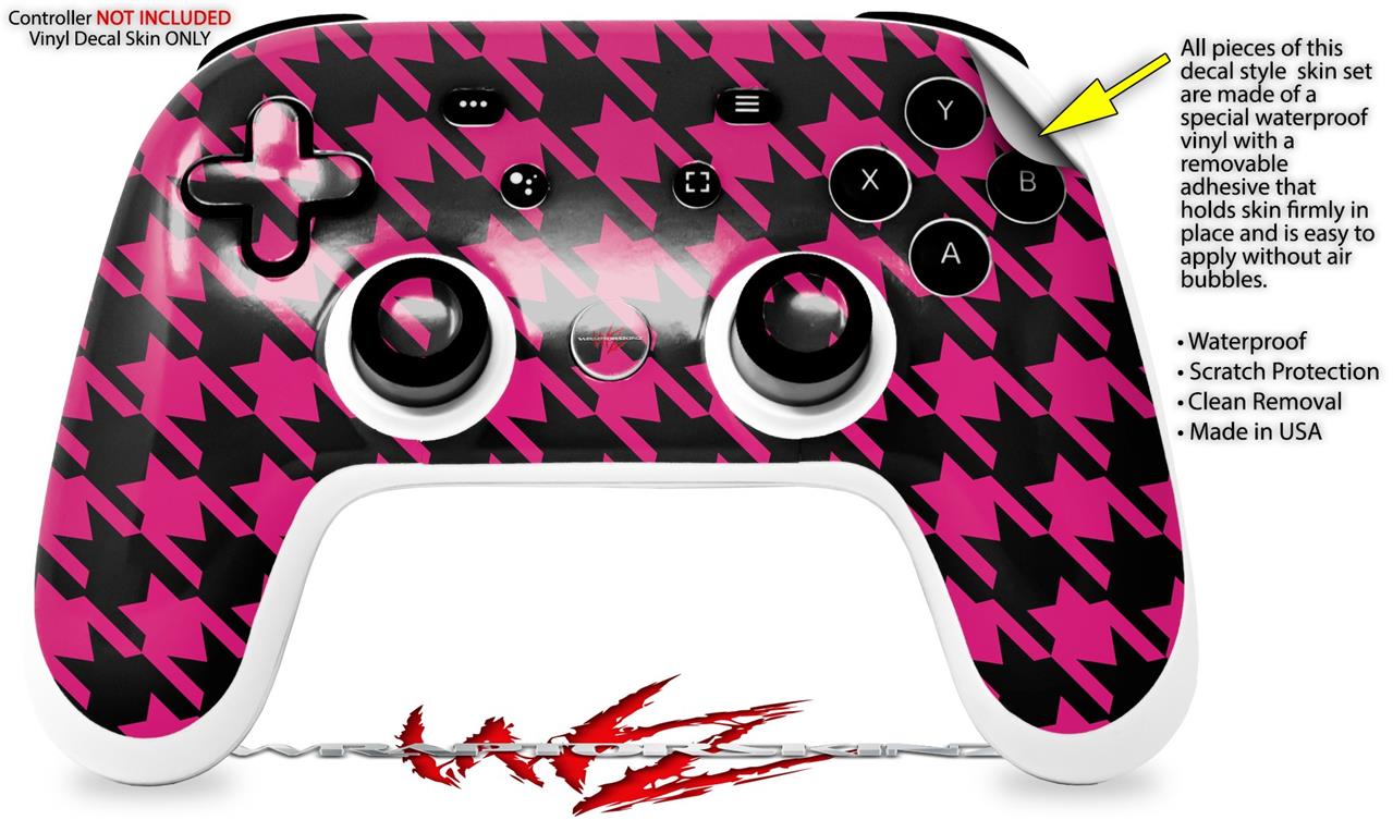 Skin Decal Wrap works with Original Google Stadia Controller Houndstooth Hot Pink on Black Skin Only CONTROLLER NOT INCLUDED