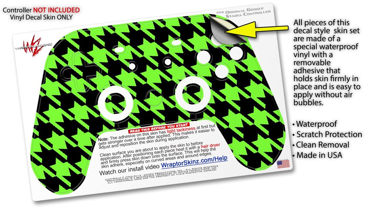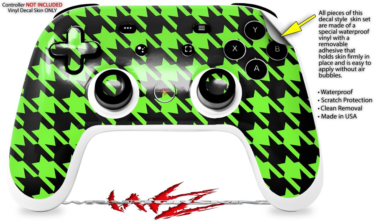 Skin Decal Wrap works with Original Google Stadia Controller Houndstooth Neon Lime Green on Black Skin Only CONTROLLER NOT INCLUDED