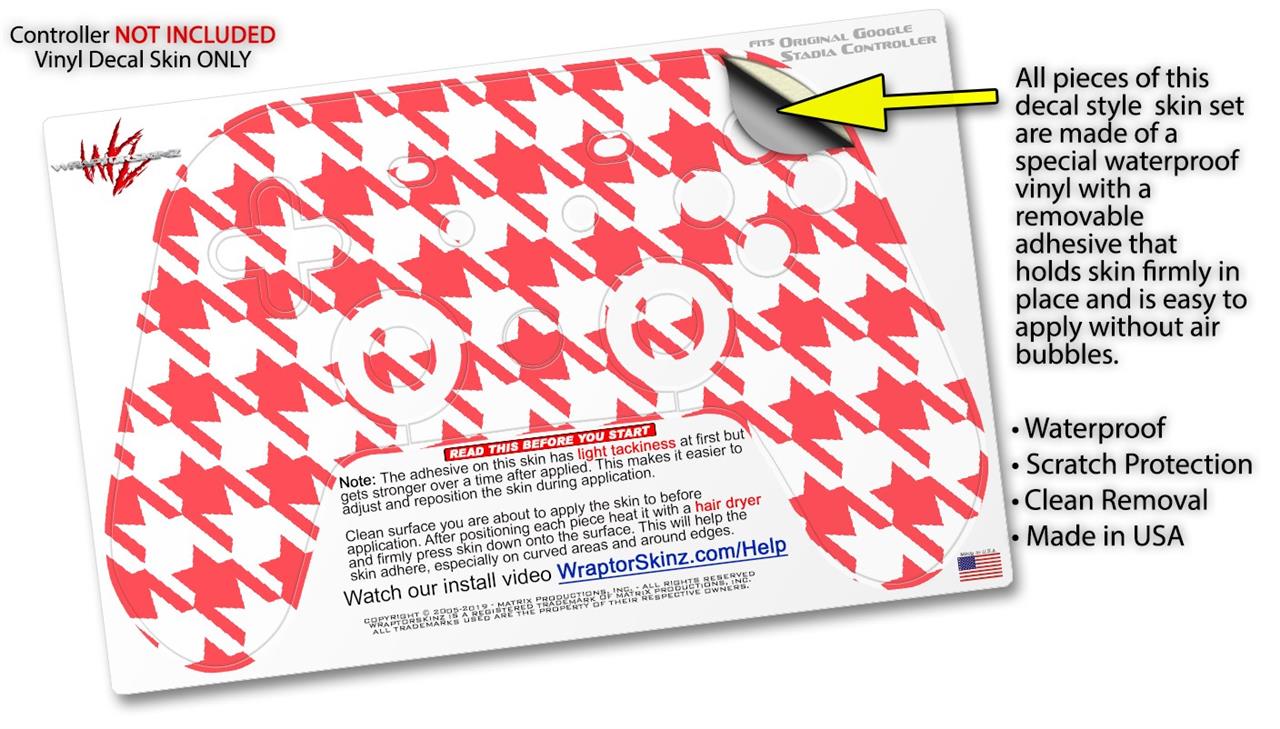 Skin Decal Wrap works with Original Google Stadia Controller Houndstooth Coral Skin Only CONTROLLER NOT INCLUDED