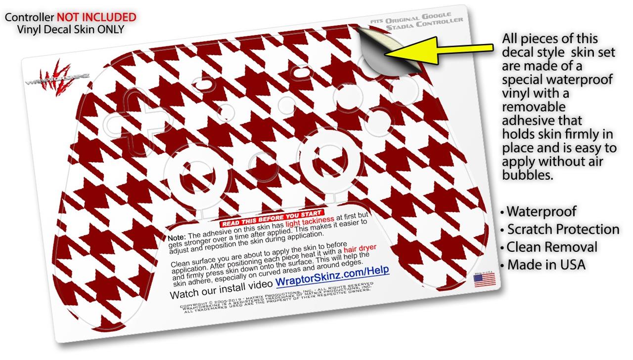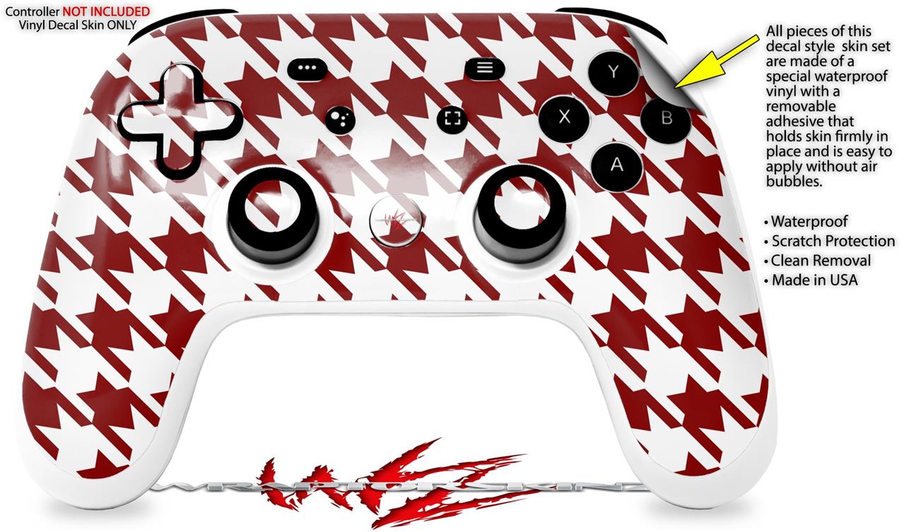 Skin Decal Wrap works with Original Google Stadia Controller Houndstooth Red Dark Skin Only CONTROLLER NOT INCLUDED