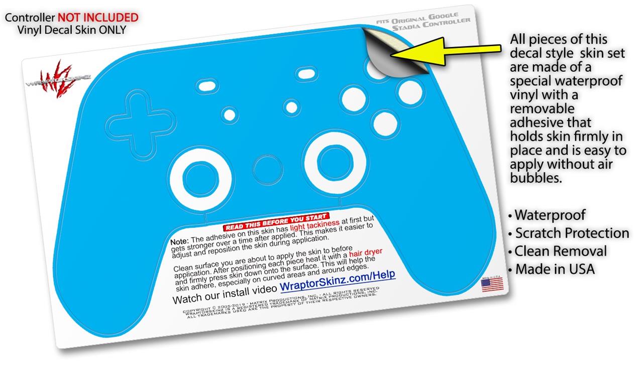 This product is in no way affiliated with or endorsed by Google. WraptorSkinz® skin wraps work with the Original Google Stadia version 1 Controller. Printed using superb photo quality designs and vibrant colors printed with special fade resistant inks that last even in direct sun for years. WraptorSkinz are a composite of two layers of commercial grade materials. The bottom layer is a soft, flexible vinyl with a special removable adhesive that is easily positioned, applied without air bubbles. Next, we print the bottom layer with UV protected, fade resistant inks that deliver superb photo quality designs in vibrant colors. Finally, we bond a professional grade laminate over the entire skin adding a glossy protective finish.