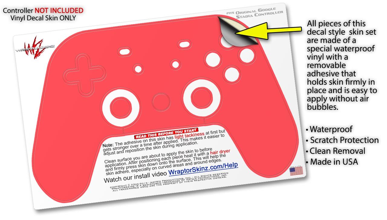 Skin Decal Wrap works with Original Google Stadia Controller Solids Collection Coral Skin Only CONTROLLER NOT INCLUDED