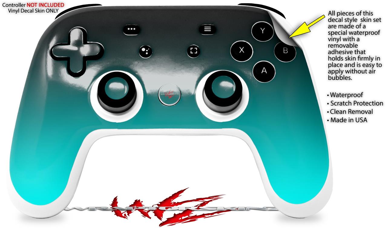 Skin Decal Wrap works with Original Google Stadia Controller Smooth Fades Neon Teal Black Skin Only CONTROLLER NOT INCLUDED