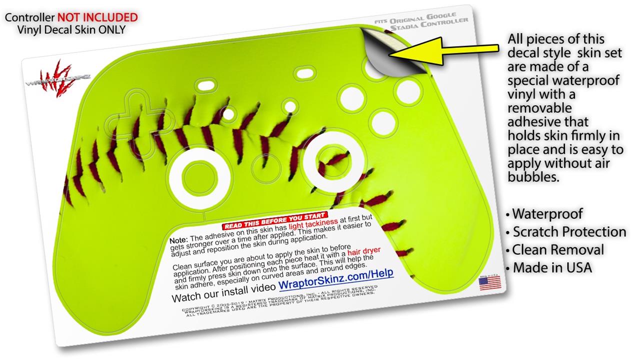 Skin Decal Wrap works with Original Google Stadia Controller Softball Skin Only CONTROLLER NOT INCLUDED