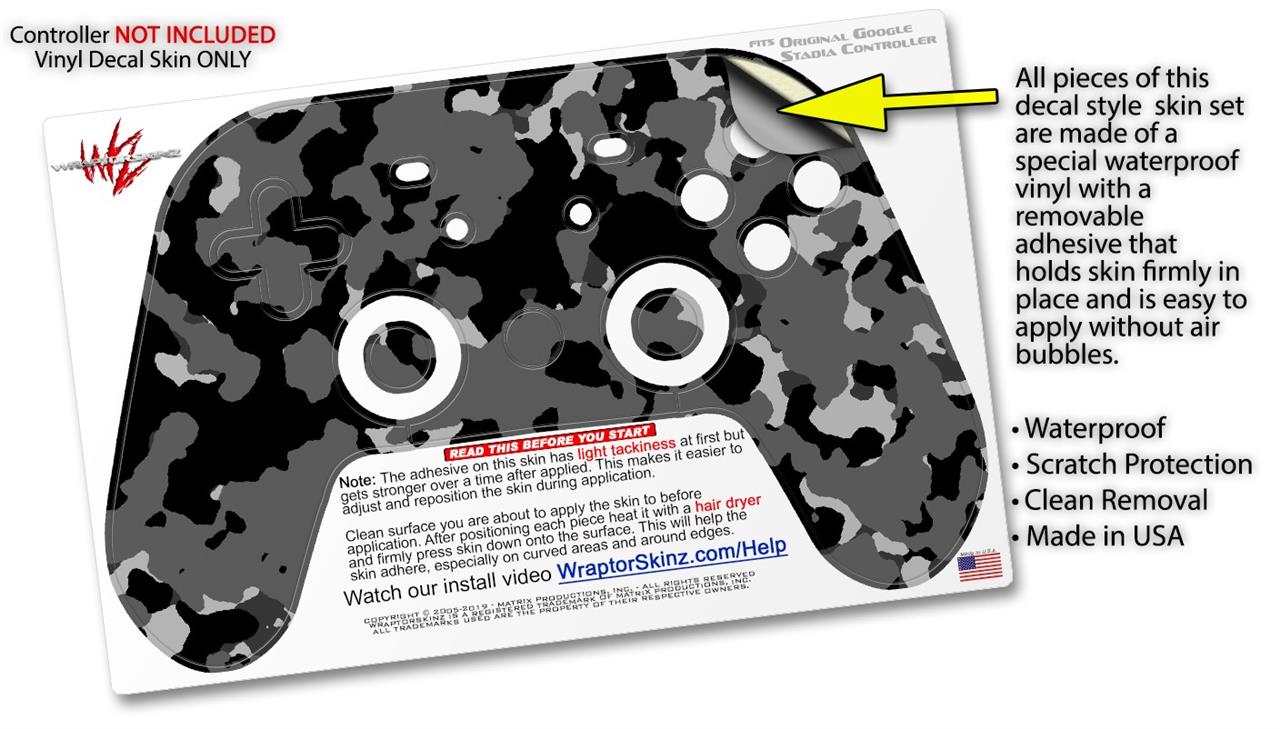 Skin Decal Wrap works with Original Google Stadia Controller WraptorCamo Old School Camouflage Camo Black Skin Only CONTROLLER NOT INCLUDED